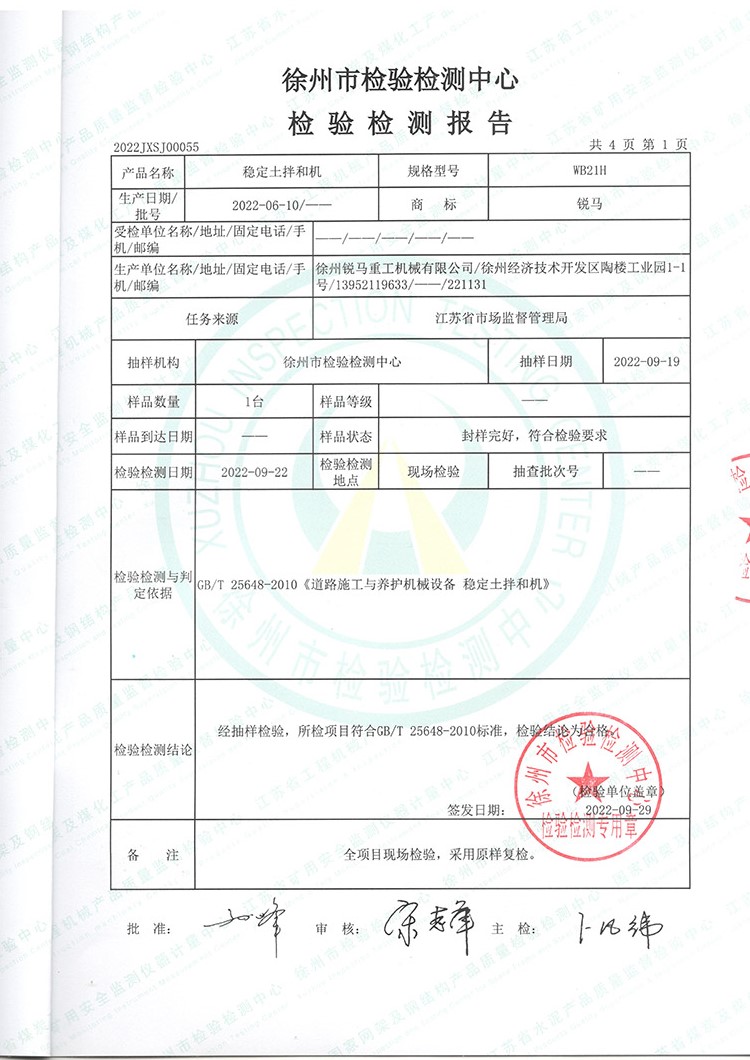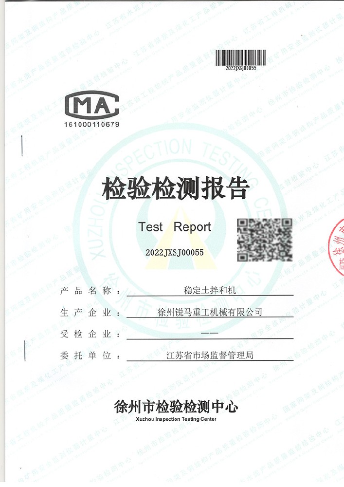 受江蘇省市場監督管理局委托,徐州市檢驗檢測中心近期對我公司產品穩定土拌和機做了整機檢測。